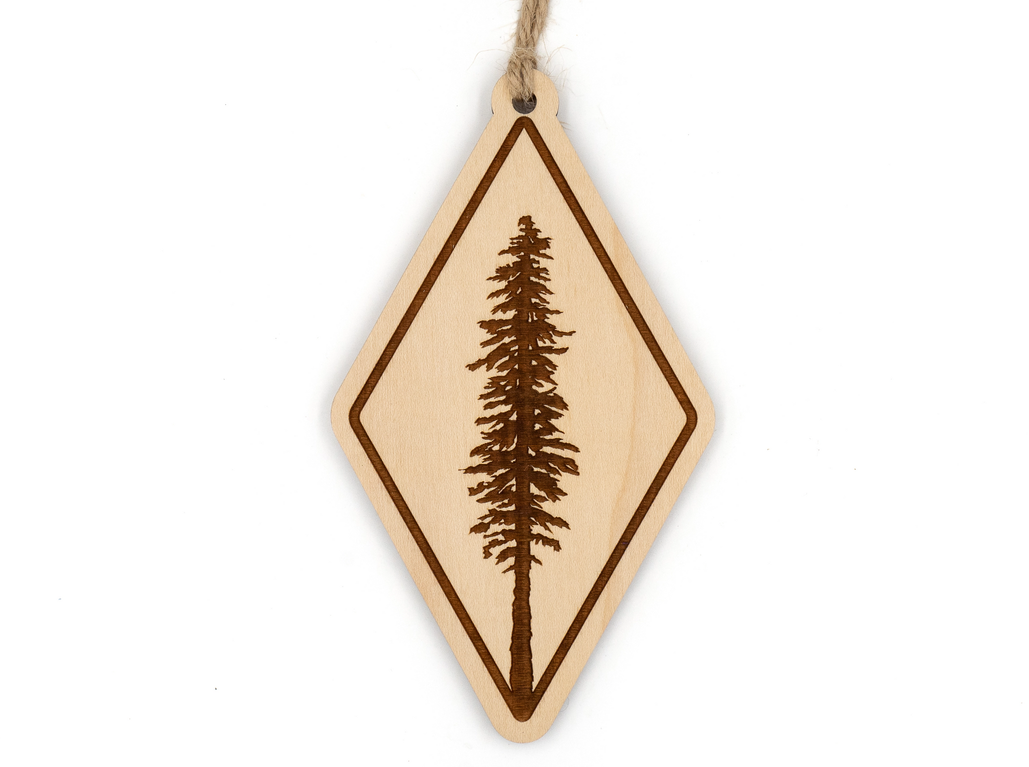 Made from 3/16" thick maple veneered wood in a solar powered Santa Cruz, California workshop. Every ornament is made from 100% sustainably harvested, American grown wood.