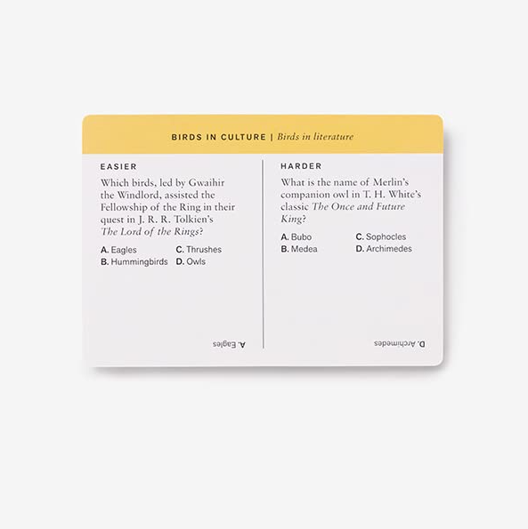 If you answered “true,” you just won a point playing this ultimate ornithology trivia game. Sibley Birder’s Trivia offers 400 questions that will test your bird knowledge over five rich categories: Bird Identification, Bird Anatomy and Physiology, Bird Names, Bird Behavior, and Birds in Culture.